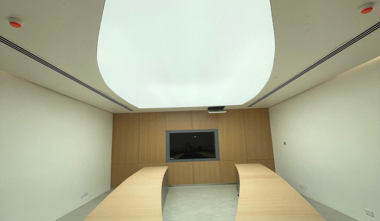 At Taiba Office in Nizwa Stretch Ceiling Masters redefined the workspace ambiance with a premium translucent stretch ceiling installation covering 19.50m². This modern backlit ceiling solution delivers a soft, diffused glow that enhances focus and comfort while adding a refined architectural touch. Designed to merge functionality and elegance, the seamless ceiling finish integrates perfectly with […]