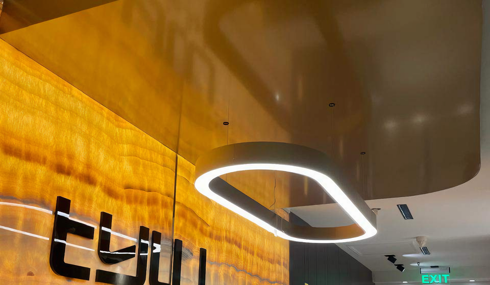 Metallic finish stretch ceilings are an innovative and stylish interior design option that adds a sleek and modern look to spaces. Here are some key points about metallic finish stretch ceilings: