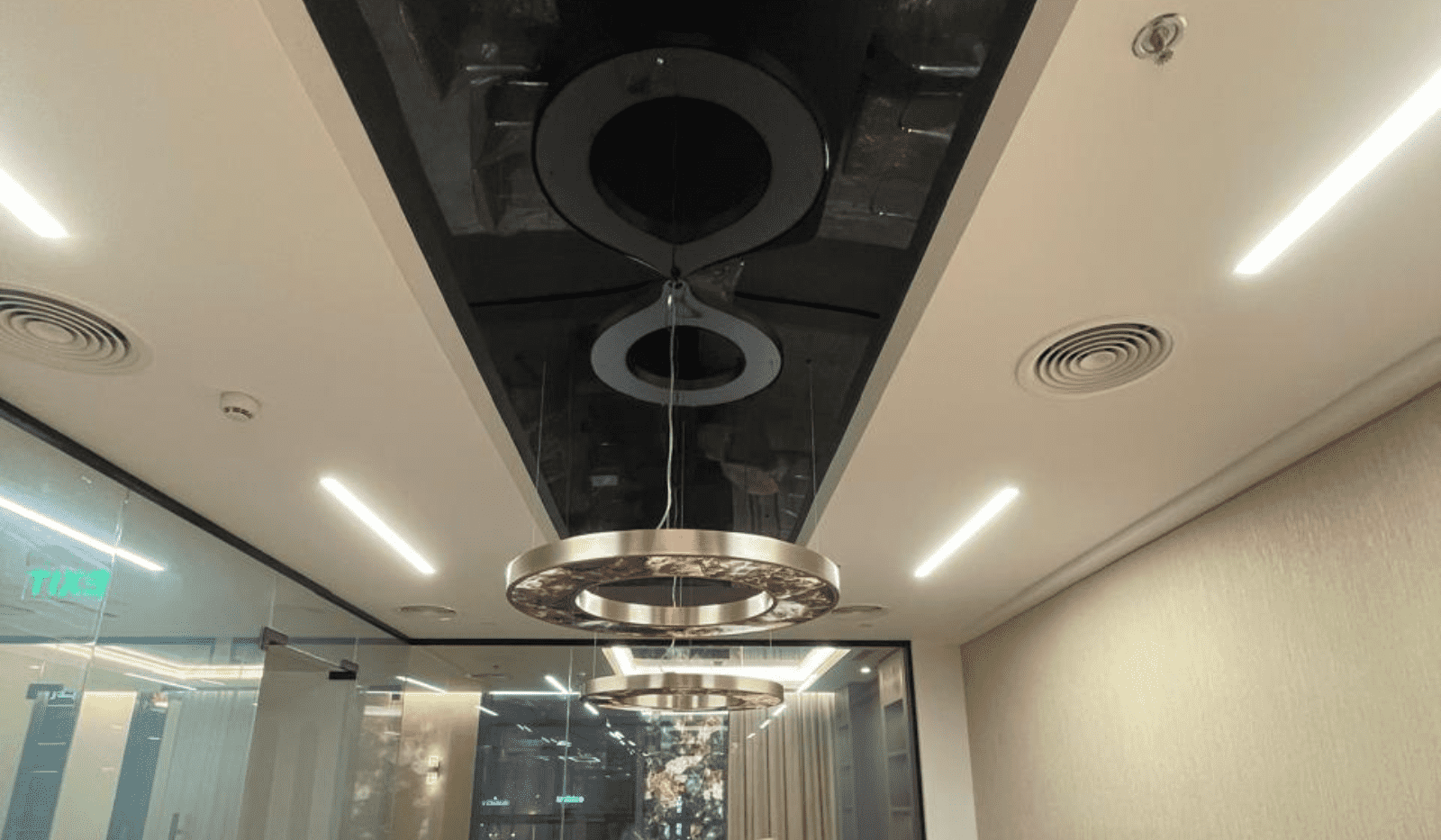 The Tylus Office project features a total of 25.44 m² of Stretch Ceilings, thoughtfully designed to elevate the contemporary office environment through contrast, reflection, and refined finishes.